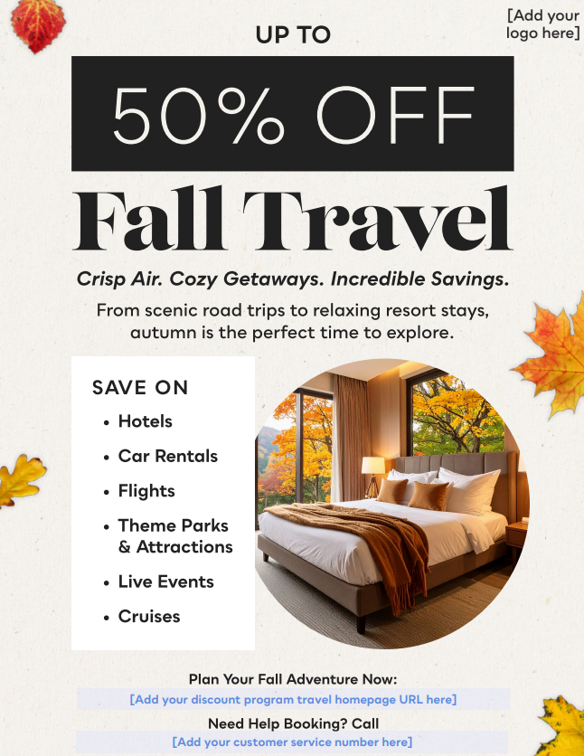 Use these printed flyers for direct mail, events, or around the office to help keep your discount program top-of-mind. Some flyers can be personalized with your program name, logo, and url.